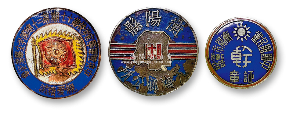 民国证章共3种,内含“中央陆军军官学校第十七期第二十总联学生毕业”、“中国国民党衡阳市党部”、“衡阳县元梅乡公所”证章各1枚,少见且保存甚佳,敬请预览