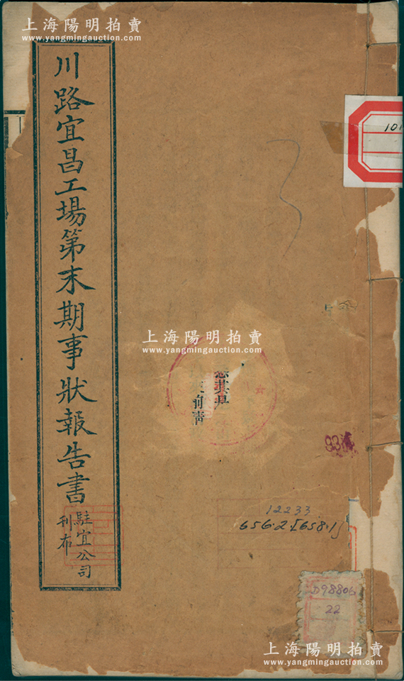 民国元年(1912年)川汉铁路《川路宜昌工场第末期事状报告书》1册,内中记载辛亥川路事变之详情,且提及股东、股票等事宜,对研究川汉铁路股票不失为重要之原始资料,保存尚可,封皮破损,内文完好,敬请预览