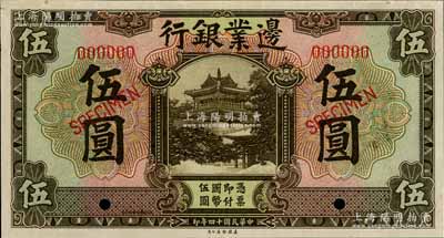 民国十四年(1925年)边业银行美钞版棕色伍圆样本券,九五成新
