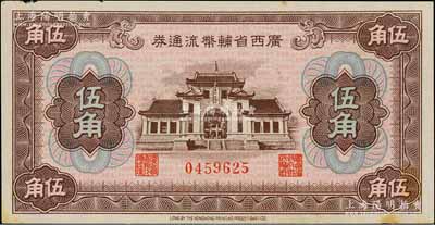 民国十五年(1926年)广西省银行伍圆,南甯地名(“甯”从用字),属第二版发行券,背面英文地名为绿色固定印刷;江南藏家出品,八五成新